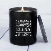 • Une Bougie parfumée 100% cire végétale dans un verre en verre noir gravé pour les anniversaires avec le design le plus cool et avec le message le plus spécial: je t'aime!