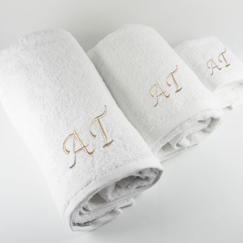 • Un cadeau unique, un ensemble de serviettes de bain, de lavabo et de toilette avec les initiales brodées.