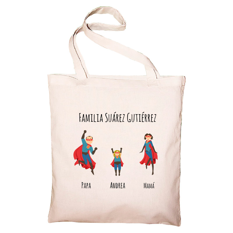 Un sac 100% coton bio personnalisé avec la famille des super-héros.
